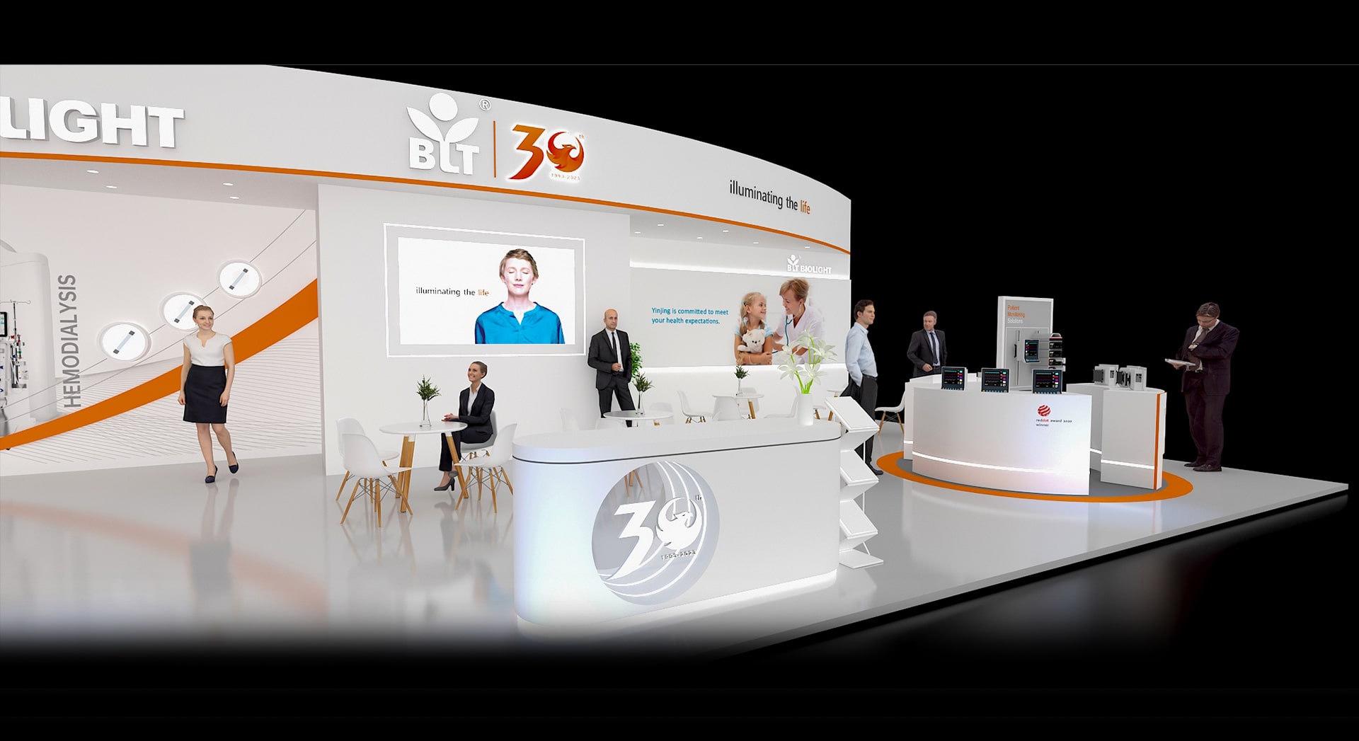 宝莱特是一家集医疗器械研发、生产及销售为一体的国家高新技术企业,业务涵盖生命信息与支持、肾病医疗和大健康医疗,产品包含监护仪、心电图机、血液透析设备、血透耗材、可穿戴家用医疗设备。觉示展览助力宝莱特德国展台设计搭建企业品牌未来发展,以精致的造型设计,塑造出一个充满活力的展台,赢得客户和参展观众盛赞。